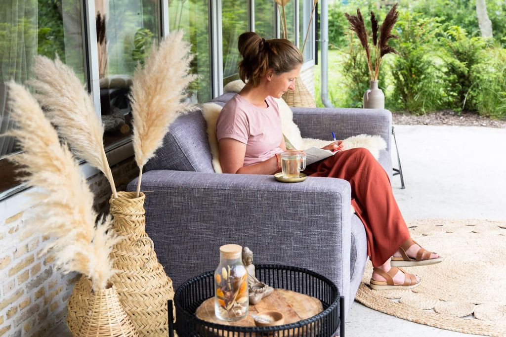 Nadat je flink wat schrijfmeters hebt gemaakt, is het belangrijk om wat afstand te nemen van je verhaal. Dus zorg dat je op een fijne bank kunt neerploffen in je huisje, download een playlist waar je los op kunt gaan of luister naar een inspirerende podcast.