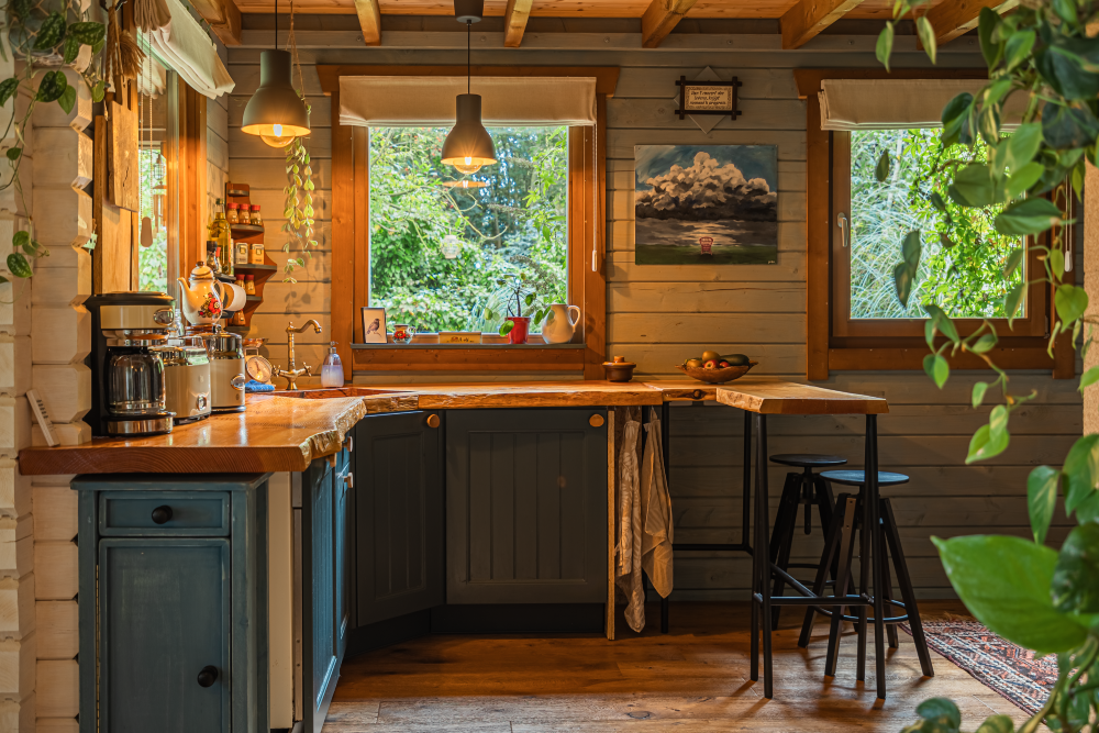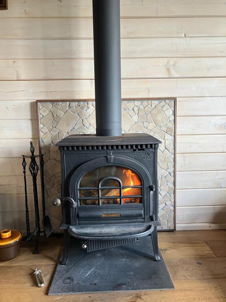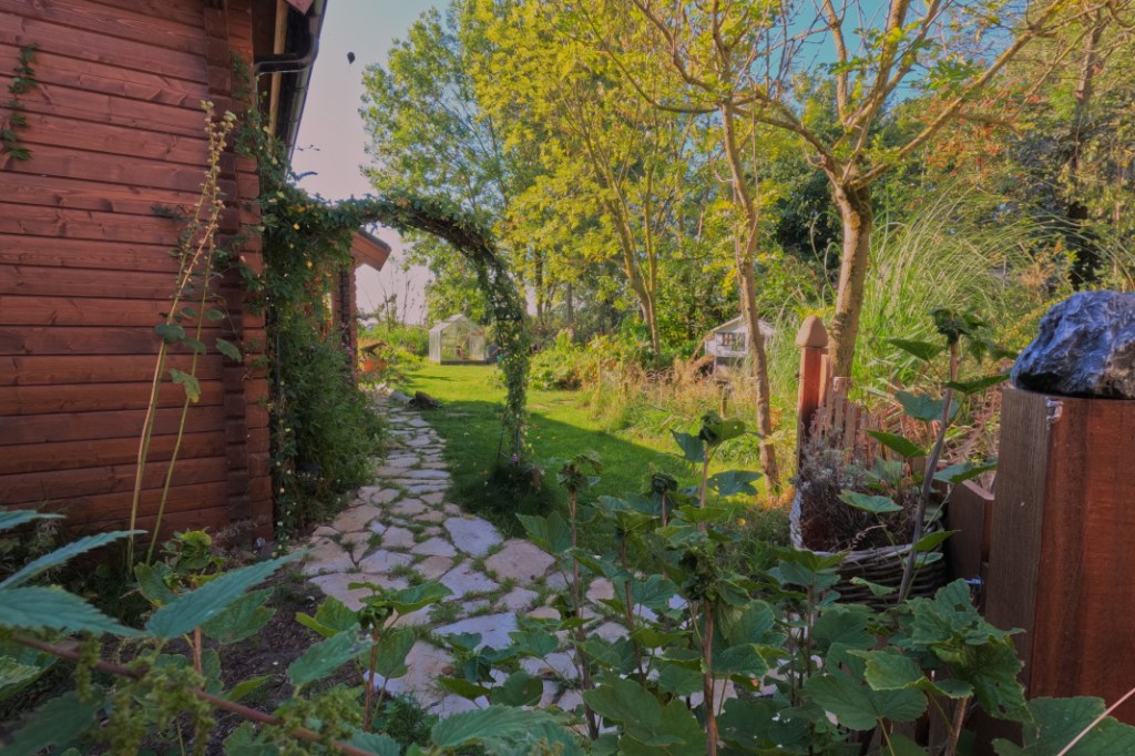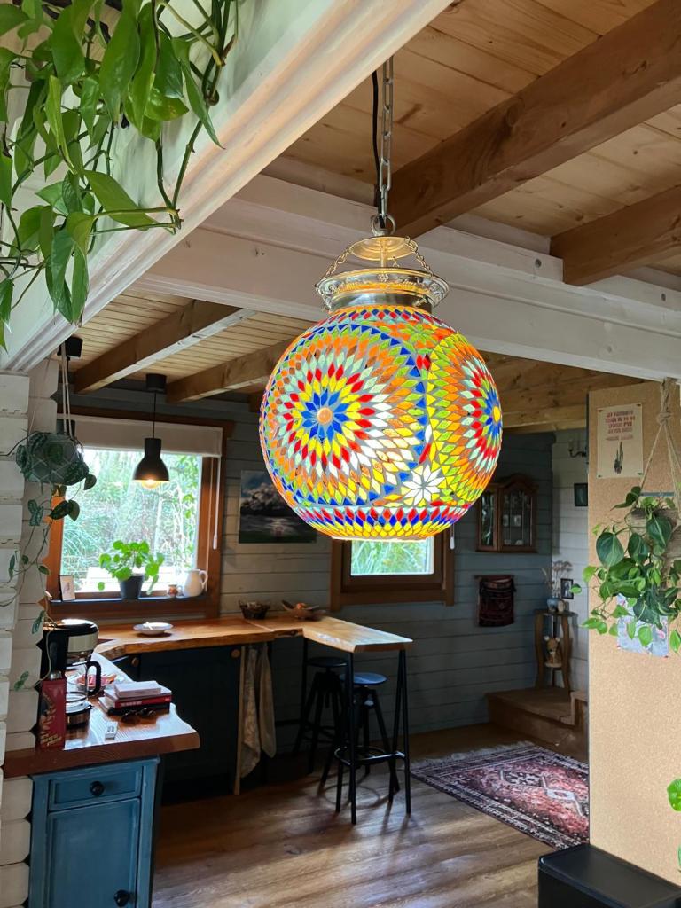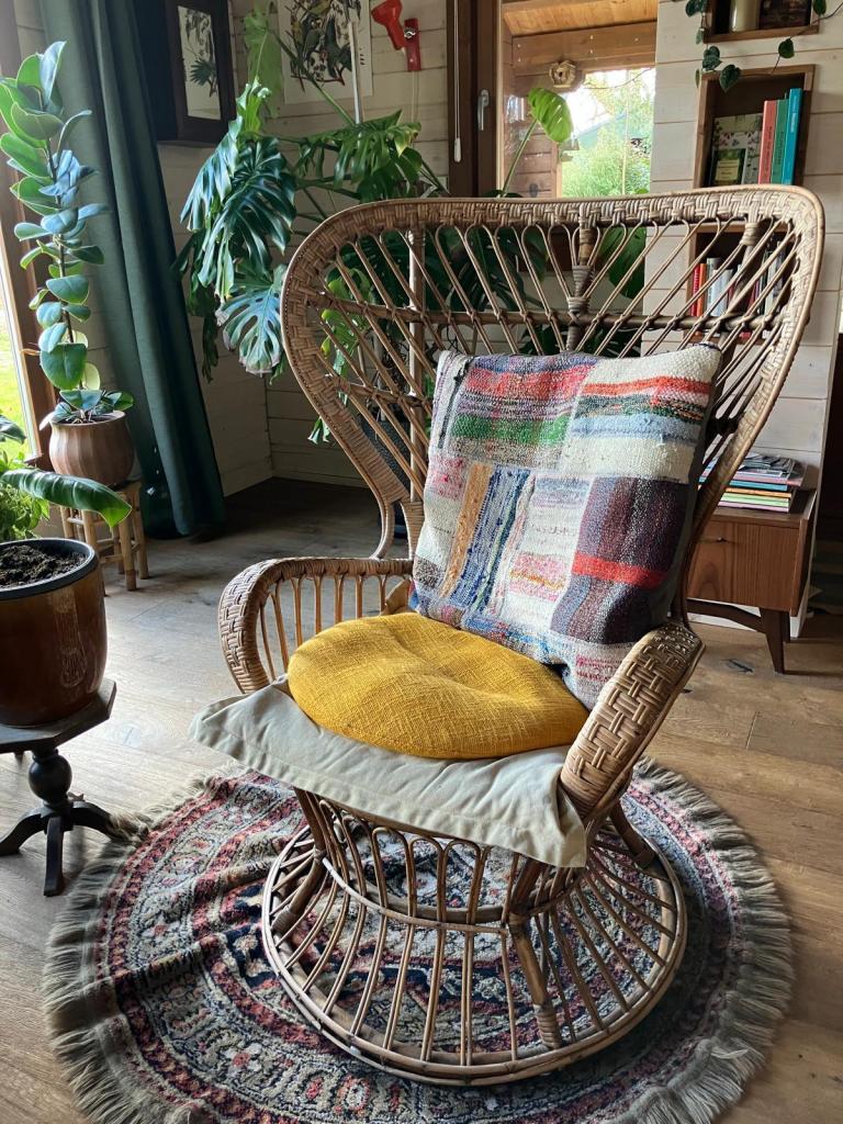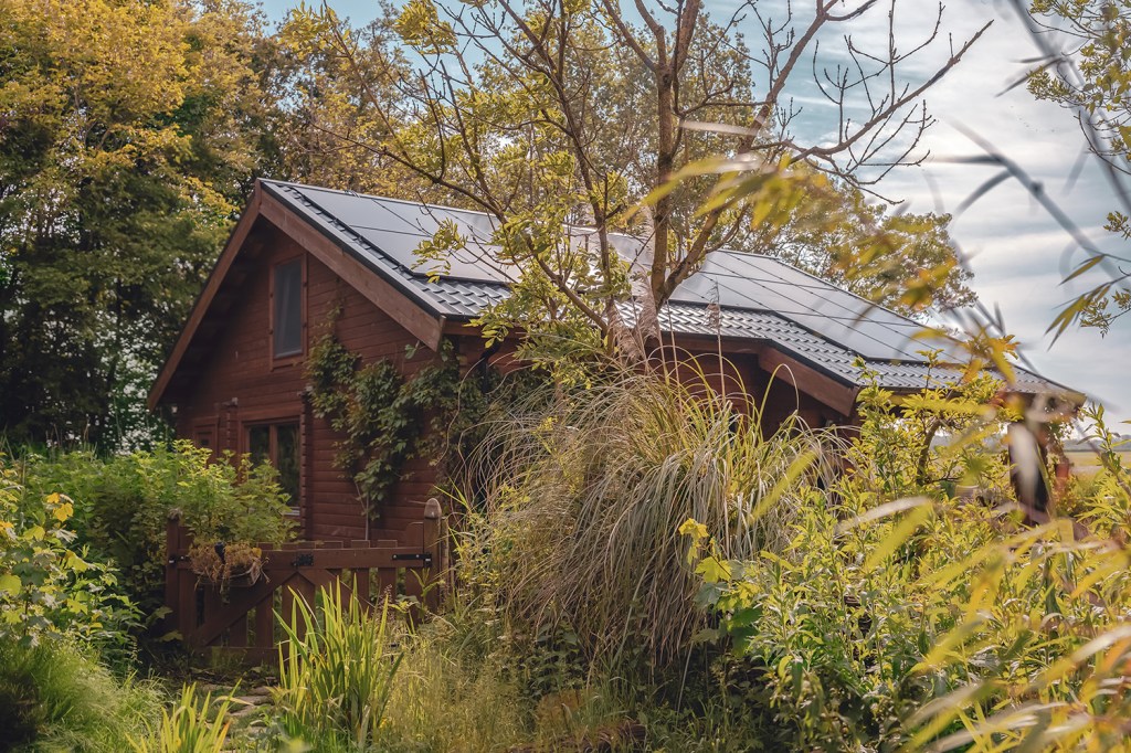 Het houten huis geeft een heerlijk geborgen gevoel. Echt een soort cocon, waarin je je kunt terug trekken.