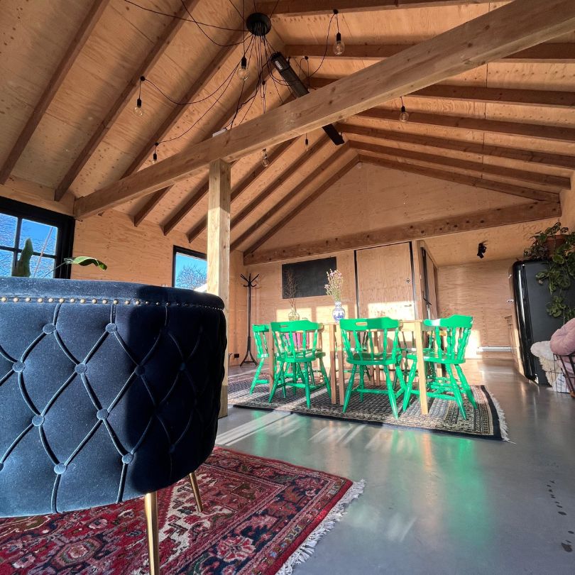 Lokaal 49 is een kleurrijke, multifunctionele ruimte. Of je de ruimte nu helemaal leeg wilt hebben of ingericht wilt hebben met een grote tafel, stoelen en daarnaast nog een fijn zitje; het kan allemaal. De ruimte heeft een huiselijke gevoel en veel licht door het grote raam aan de achterzijde, dat een landelijk uitzicht geeft met gezellig rondscharrelende boerderijdiertjes.
