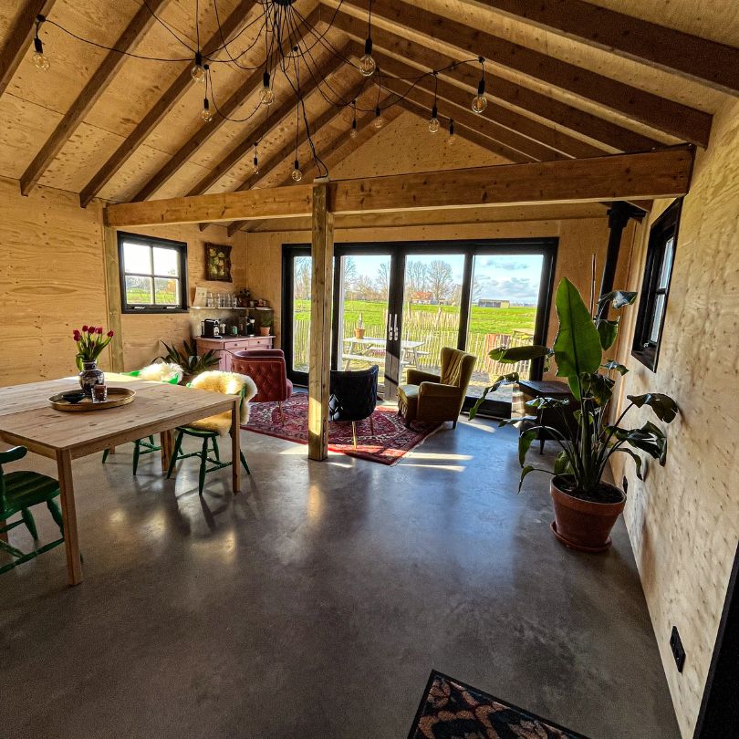 Met de warmte van de pelletkachel kun je hier in de winter heerlijk terugtrekken. In de zomer gooi je de deuren naar buiten open. Ieder jaargetijde vind je hier een mooie blik naar buiten.